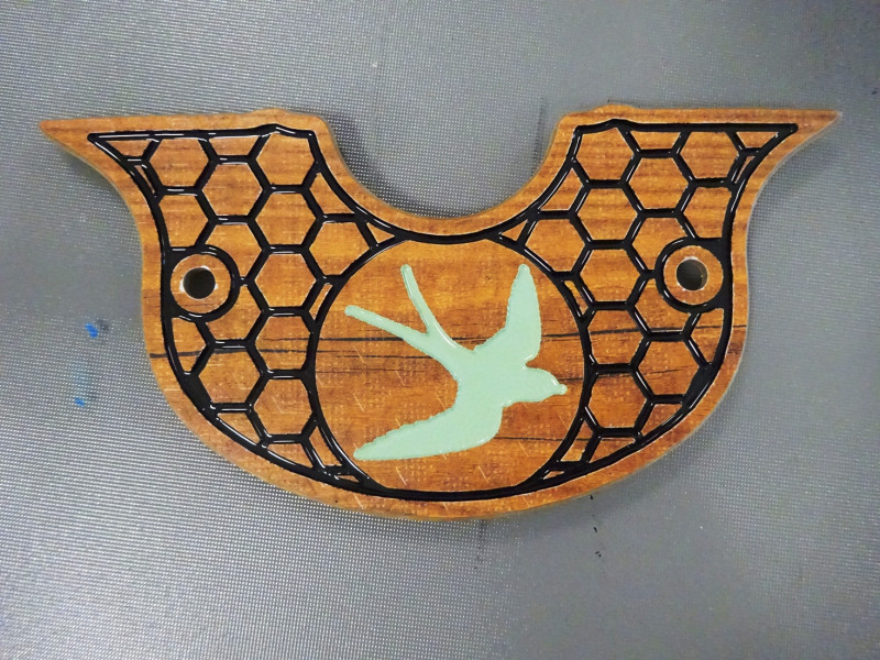 1 Armaturenabdeckung mit Gitter- oder Wabenstruktur, oder Randlinie mit der Silhuette einer Schwalbe,