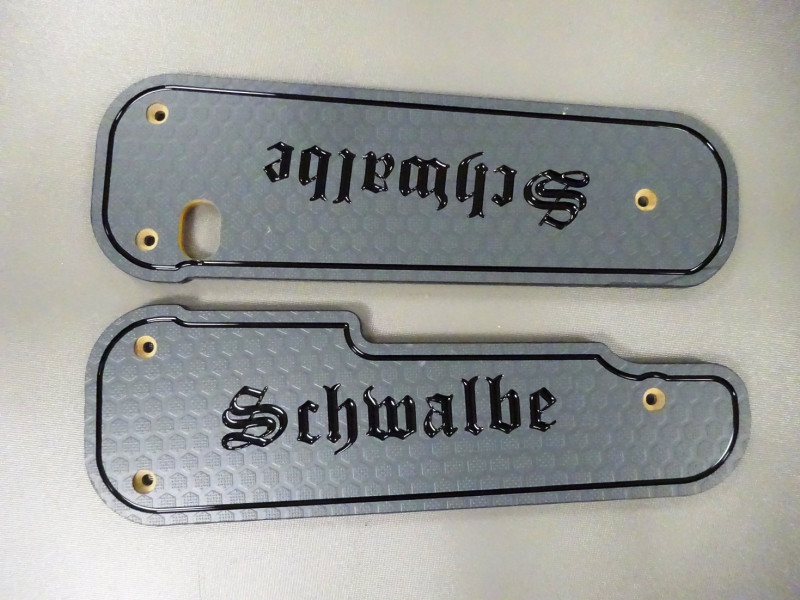 Schriftzug | Schwalbe (original) Randlinie, Schwalbe (original) + Vogel, Schwalbe (original) + 15 mm Gitterstruktur, Schwalbe (original) + 15 mm Wabenstruktur, 15 mm Wabenstruktur, Simson (altdeutsch), Schwalbe (altdeutsch), Simson geschwungen, Schwalbe S, nur Randlinie, Schrift nach deiner Wahl |
