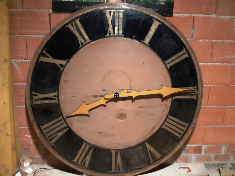 – Ziffernblatt und Zeiger aus absolut wetterfesten HPL-Platten 8mm,